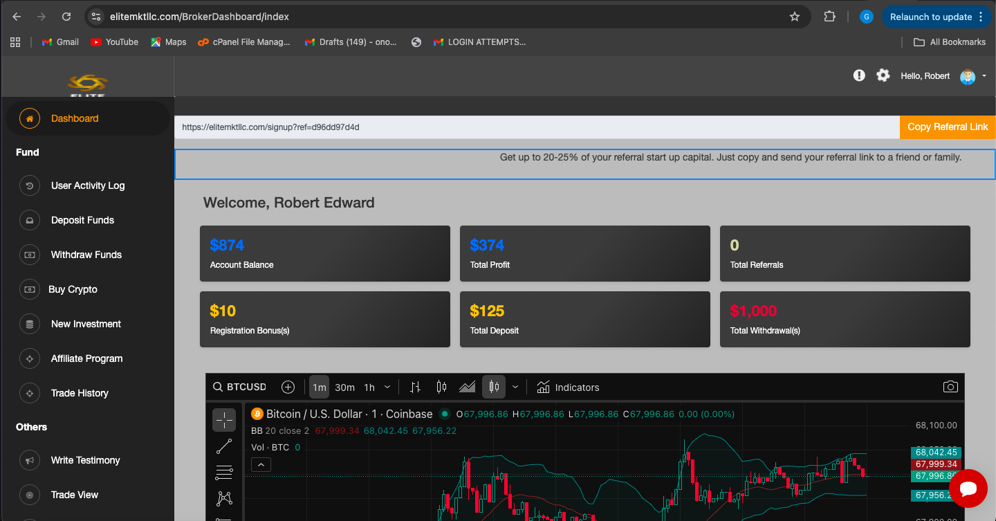 Being a college student, my time is very long, so I can not lose my focus on studies for a long time. I'm trading with Elite Market, LLC and now everything has run smoothly and without stress! The yield is very good: I got my financial freedom and I no longer need to cut expenses.